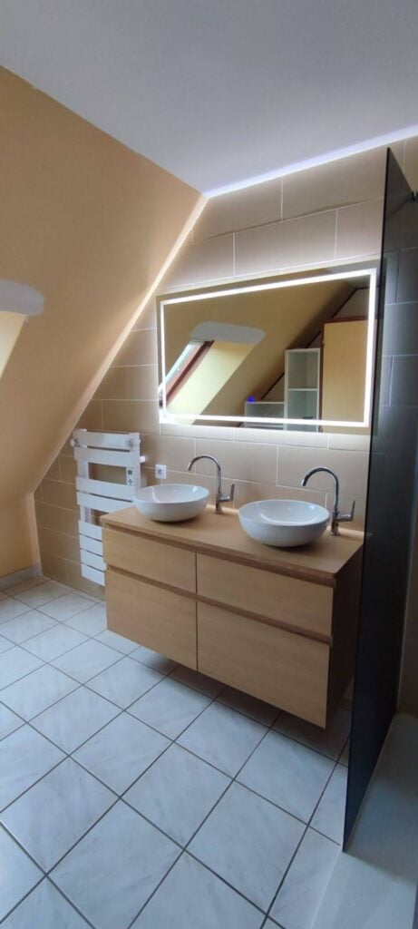 Créer ou rénover une salle de bains demande plusieurs corps de métier : plombier, électricien, plaquiste, carreleur. Avec notre service de salle de bains clé en main, vous profitez d’un interlocuteur unique qui coordonne et réalise chaque étape, nous ne faisons intervenir aucun sous-traitant. Nous assurons l’ensemble des travaux, du passage de réseaux à la mise en place des équipements, en passant par les finitions soignées indispensables à un rendu durable et esthétique.